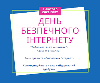 9 лютого 2021 року у світі відзначається День безпечного Інтернету (Safer Internet Day) під гаслом “Разом для найкращого Інтернету”.